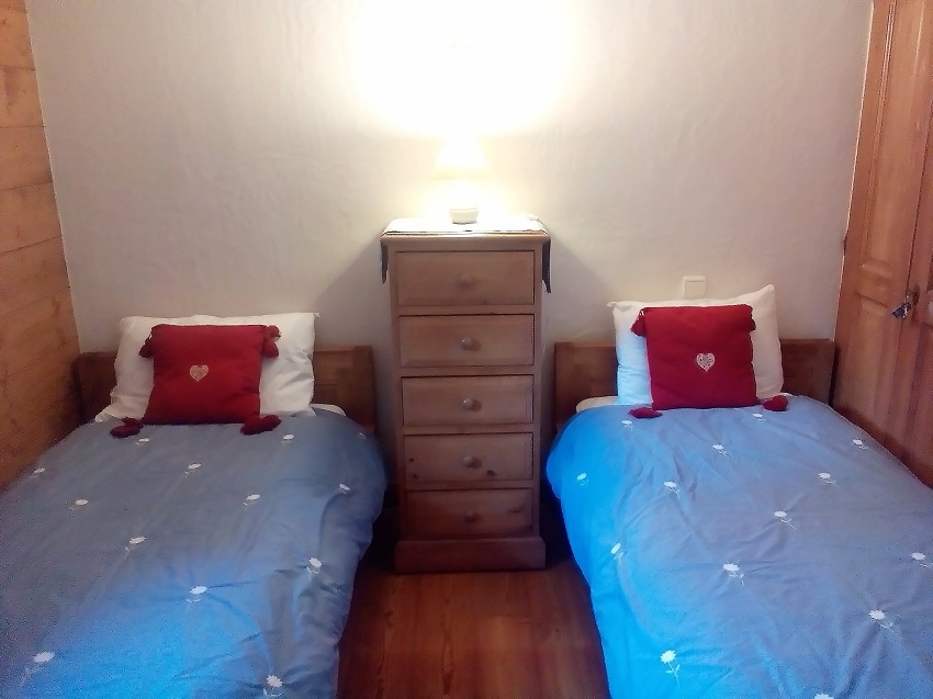 - Bedroom 2 – is furnished with two full size single beds with duvets and duvet covers, plus a pine chest of drawers.