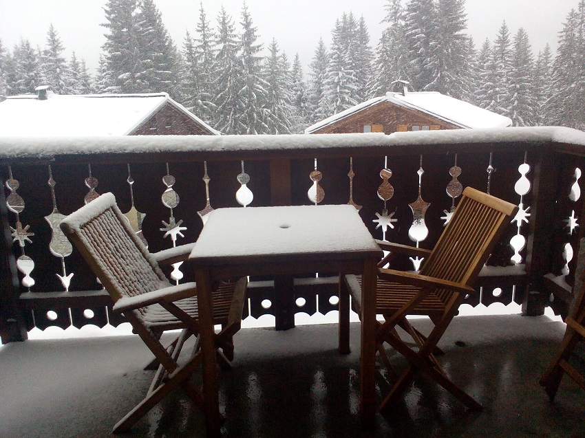 - Balcony with four teak chairs and and table, ready for you to relax and enjoy the beautiful panoramic views of the Grand Massif mountains.