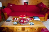 - Living Area – There are two three seater sofas; one sofa converts to a double bed, pine display and storage cabinet, pine coffee table, a 82cm high definition flat screen TV connected to satellite showing UK free-view channels and a blue ray DVD player with a large film library for your use and free high speed wi-fi.
