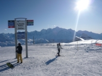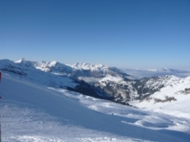 After a sucessful early ski holiday in the Grand Massif of France in Decmber 2008 we decided to repeat the timings in 2009. Arriving in Les Carroz d’Araches on Saturday December 12th, there was a few inches of snow in the village which had arrived that day. Flaine had seen similar dumps of snow with the resort opening on December 12th. On Monday 14th December we skied in Flaine, with fantastic conditions, a sunny cold day with clear views of Mont Blanc, as seen in the image below.