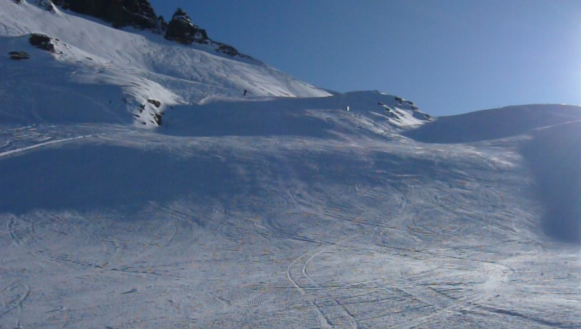 The ski runs in Flaine were in great condition with plenty of snow cover until reaching the village at 1600m where some stones had been churned up. The images above show the ski runs at the top of Flaine.