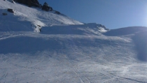 An estimated 100 cm of snow at 2200 m and 20 cm at 1600m was sufficient for a good day of skiing in Flaine. Disappointingly, there were only 3 ski lifts open; the small beginners lift at 1600m, the large DMC telecabine providing access to the top of Flaine and the Col de Plate chair lift accessible the bottom of the Serpentine/Crystal ski runs.