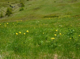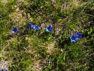 The return part of the journey took half the time of the ascent. The wild mountain flowers were in abundance so I took a few photos showing the contrast in colour from a bright yellow to a deep rich violet. A mountain biker was making the ascent on of the paths.