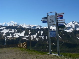 The view from the top of Tete de Saix was magnificent, with far reaching views over Morillon, Samoens and a snow capped view of Mont Blanc. What was surprising for June was the amount of snow still around on the ground at altitude. Below is another photo showing the ski signage at Tete de Saix at an altitude of 2120 m and a video showing the views panning through 360 degrees.